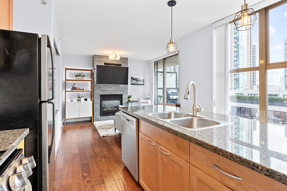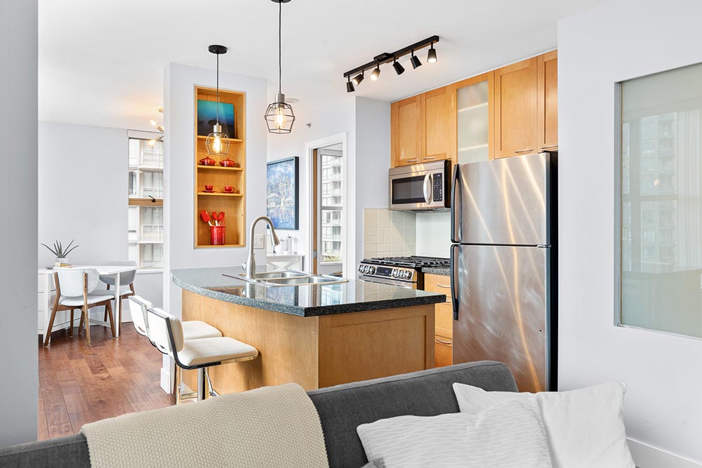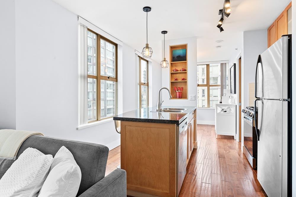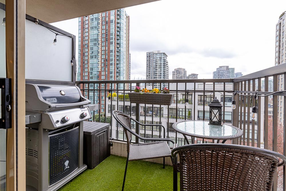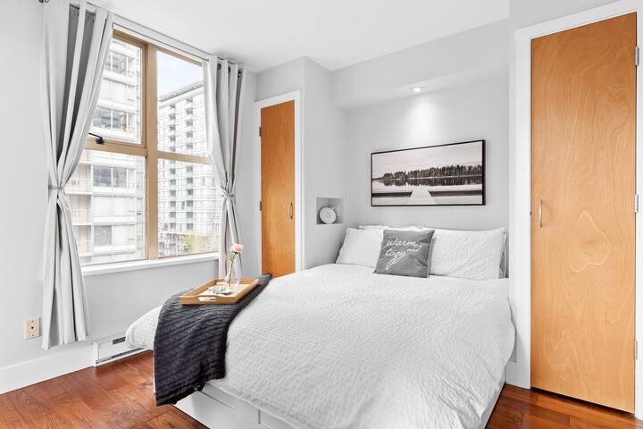 Cozy, one bed/1 bath plus den, furnished apartment, located in a sleek, contemporary building in prime downtown Vancouver location. Walk score of 99! Public transport score of 100! Upscale building with gym, sauna, hot tub & high speed elevator. Enjoy the city views from your patio. Bike storage, and secure underground parking available. Close to theatre, dining, bars, sports/concert arenas, and many iconic Vancouver spots! Walk or cycle to work or enjoy the best Vancouver has to offer.