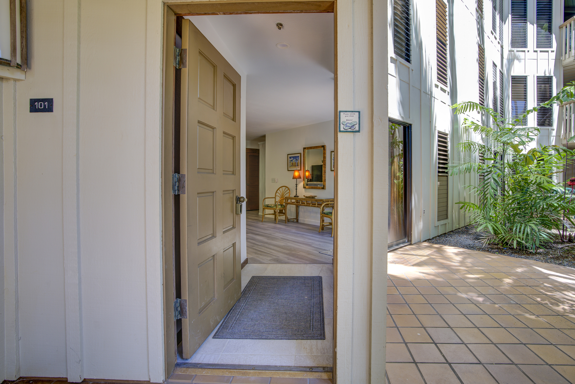 Villa 101 is a 1100 sq.ft., 1 bedroom, 1 level condominium with easy access: park your car right outside the front door and enjoy the convenience of ground level entry.