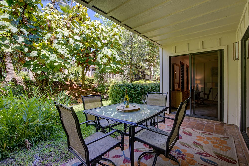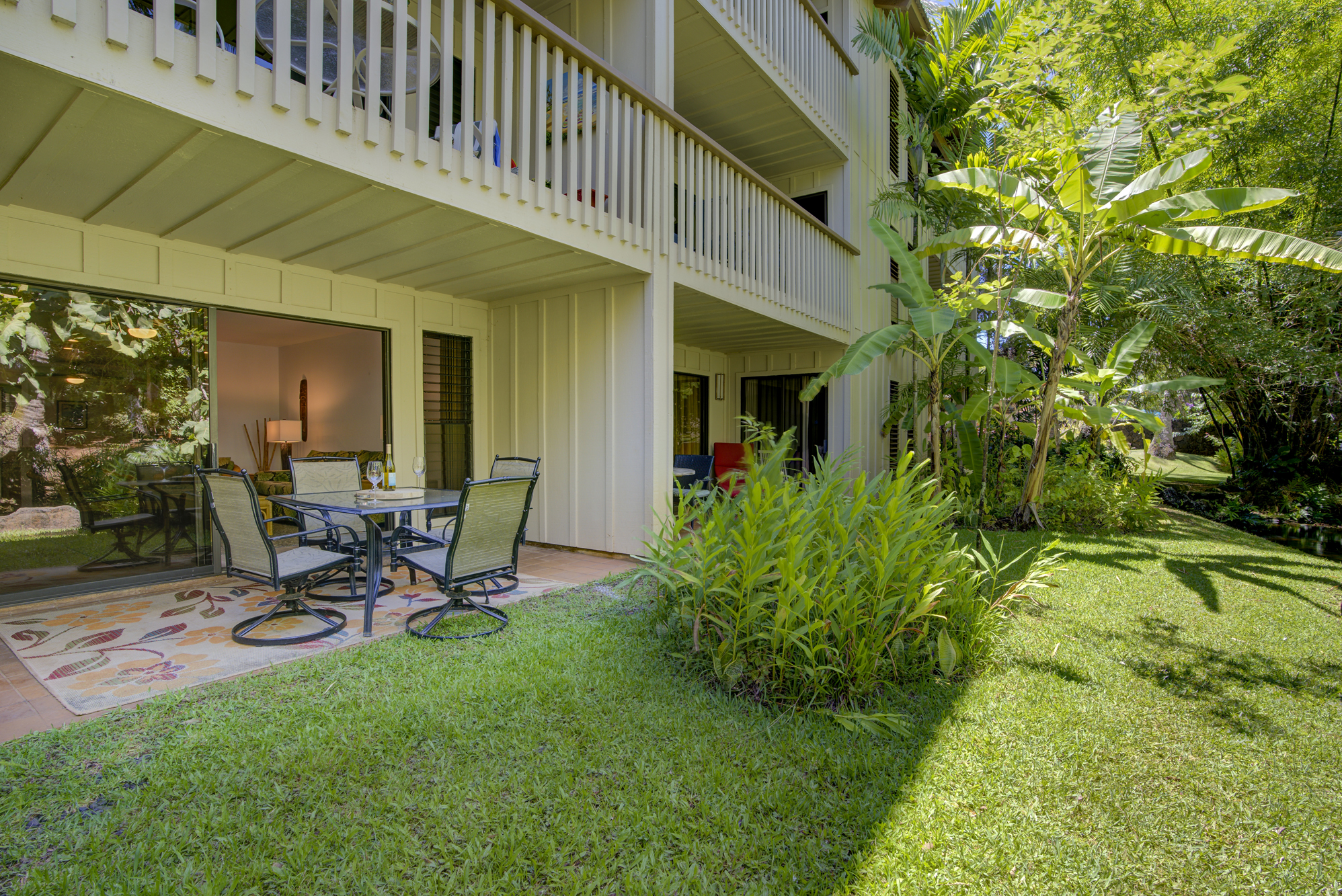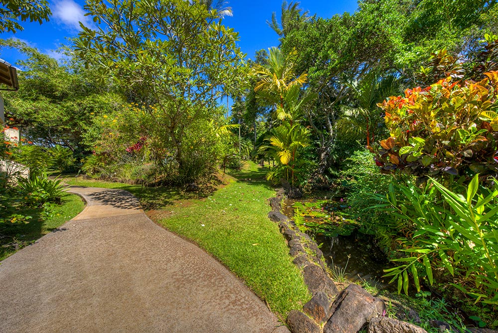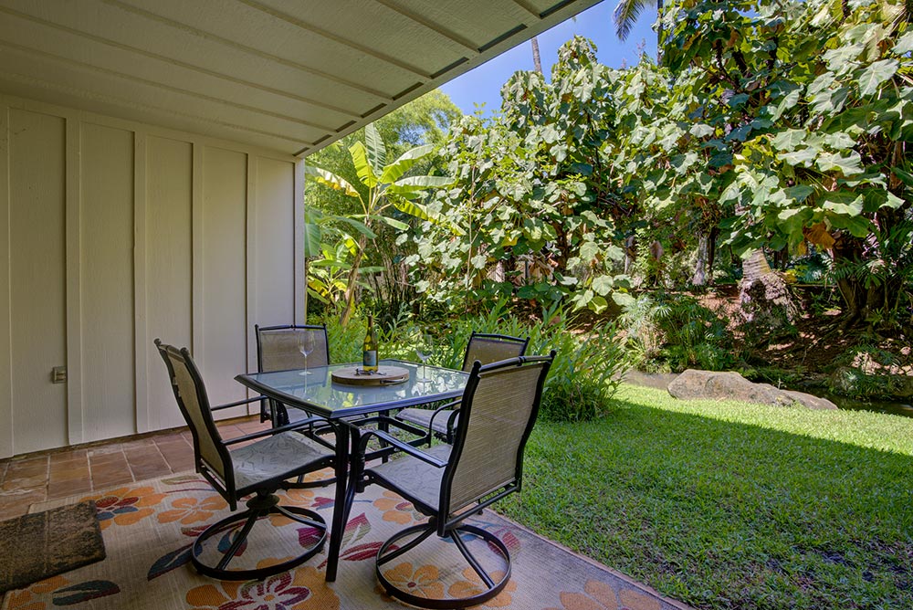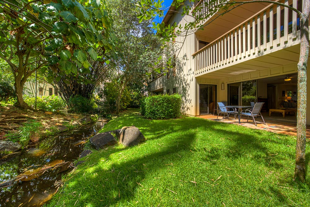 The lanai off the living room is a beautiful setting amongst the peaceful stream and lush tropical vegetation. The grounds at Waikomo are impeccable. Enjoy your morning coffee on the lanai listening to the stream amidst the tropical oasis setting or your glass of wine at the end of a busy day doing the endless island activities.