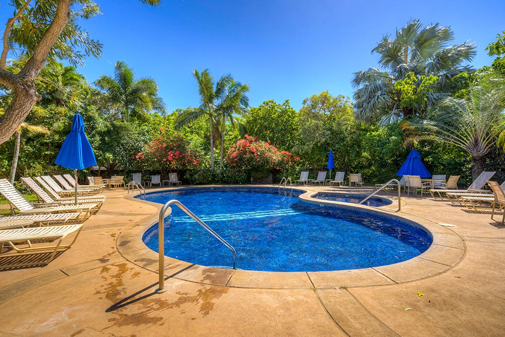 Waikomo Stream Villas, considered “a little gem of Poipu”, is situated on 3.9 acres of lush, tropical gardens. You will see why Kauai is named “The Garden Isle”. A smaller condominium complex, only 60 units, Waikomo is situated within walking distance of all of what is fantastic about the resort area of Poipu Beach: world class golf, amazing beaches, trails, restaurants, shopping, snorkeling and other water sports.